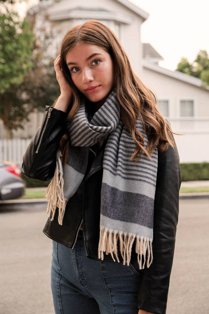 Introducing our Contemporary Striped Woven Tassel Scarf, designed to enhance any outfit with its chic and trendy style. Featuring a beautiful striped pattern, this scarf is perfect for layering and provides a cozy touch for both casual and formal occasions. Made from soft, high-quality materials, it offers comfort and warmth throughout the seasons. The playful tassels add a modern flair, making it a versatile accessory for boutique stores and e-commerce brands alike. Ideal for gifting, this scarf is a fashionable choice that your customers will love, ensuring they stay stylish and comfortable no matter the season.