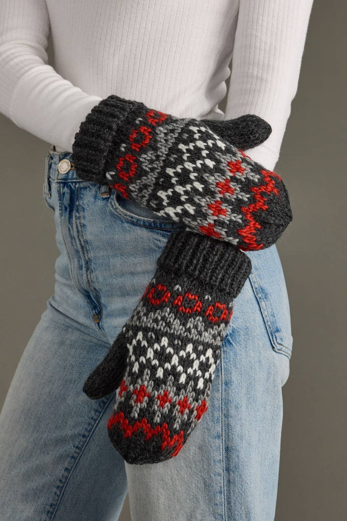 Dk. gray, white, red & gray patterned mittens