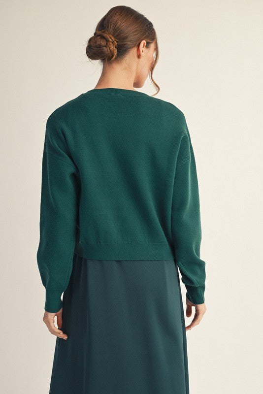 Long sleeves soft texture sweater top with knot accent, drop shoulder.