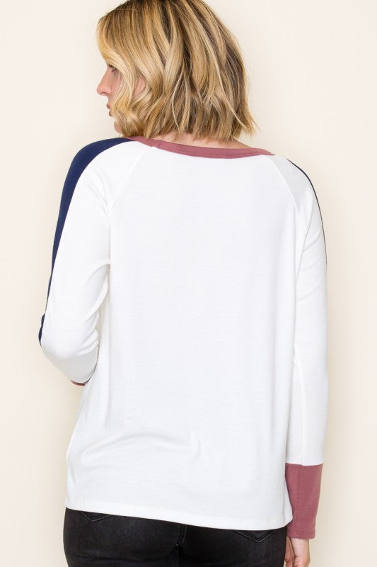 CREW NECK, LONG SLEEVE, COLOR BLOCKED, FRENCH TERRY TOP